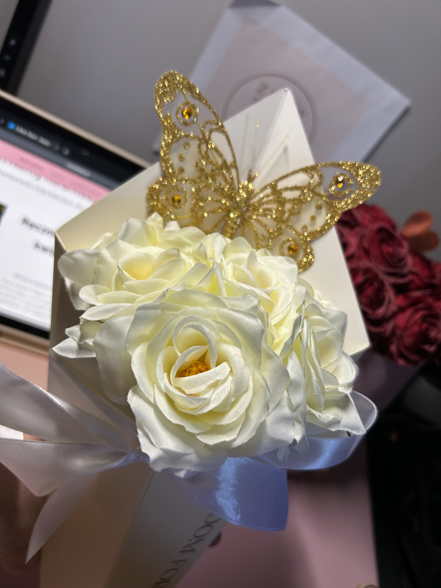 Elegancki, delikatny bukiet z białych róż- idealny na upominek.